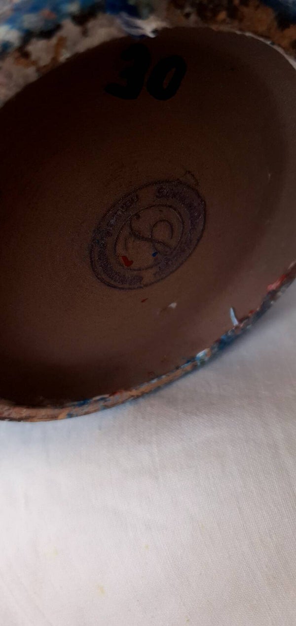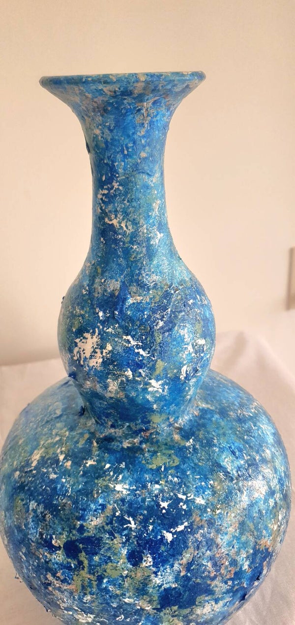 Beautifull blue Vase - object , one of a kind, handmade, made by artist, use feathers to paint with, layer on layer, special, exclusive, unique, quality vase. Include stamps