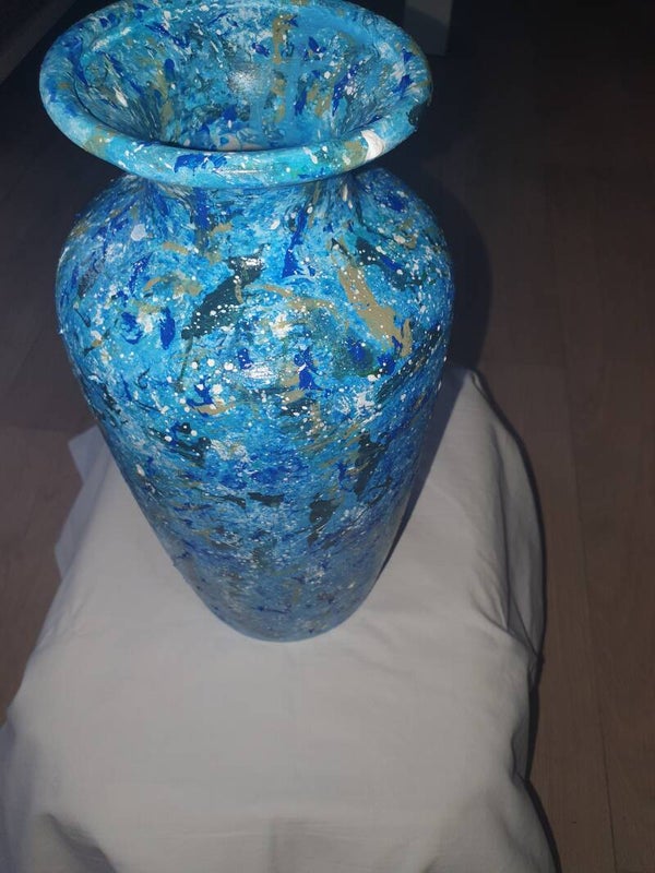 Use feathers to paint with, layer on layer, special, exclusive, unique, quality vase - object. Include stamps from the artist. For someone special, as a gift or for yourself, a unique exclusive Vase - object All kinds of luxury and modern interior.