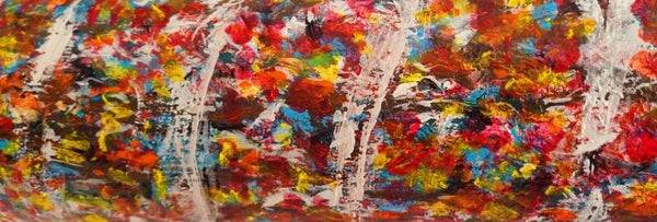 She use feathers and natural material to paint with, layer on layer, The Vase is very exclusive, unique, from quality. It has the colors red, yellow, blue, white and orange. All Vases Silvia made include stamps on the back.