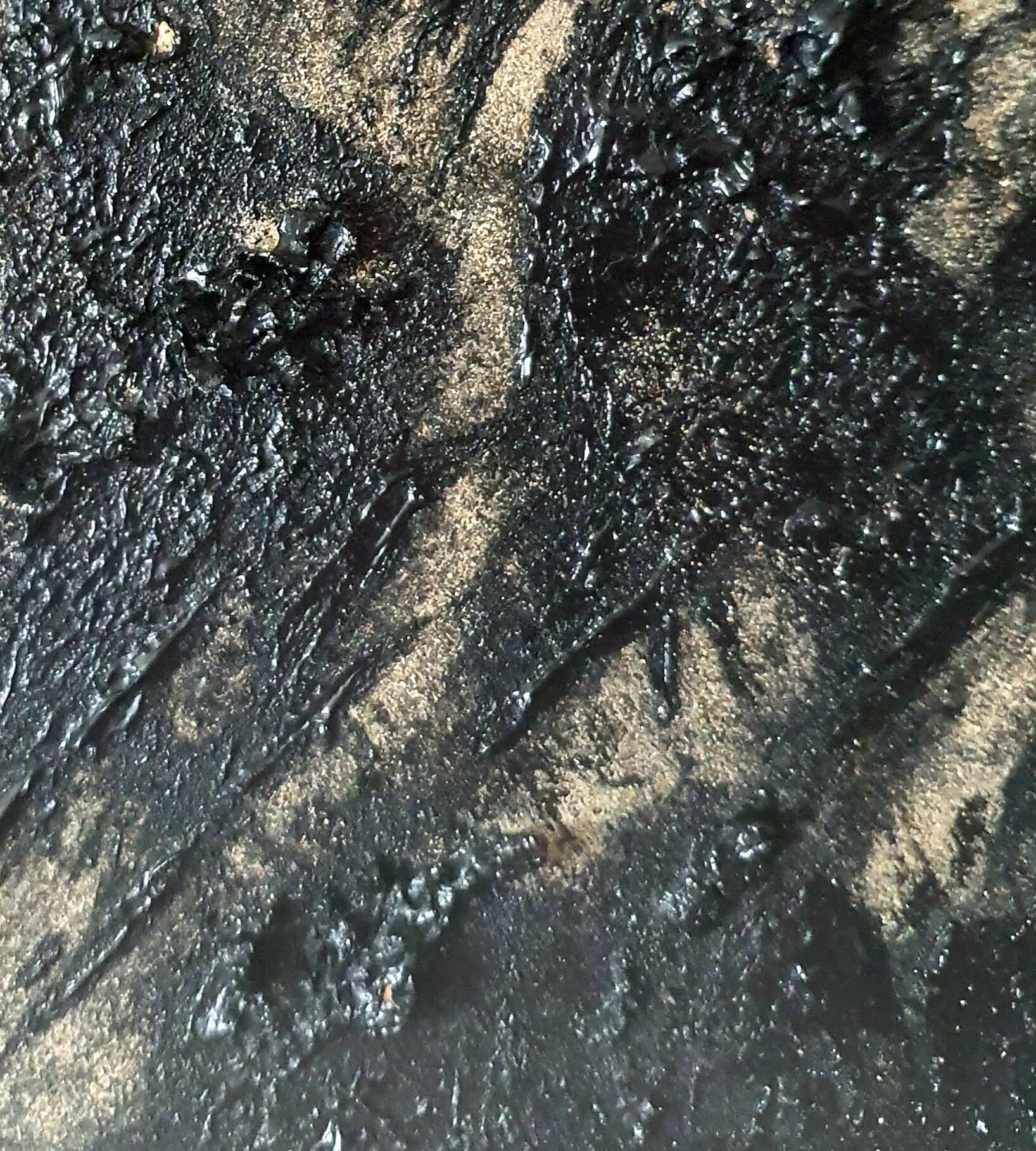 Brownie, juli 2022 (30 x 40cm) Acrylic on canvas, paint with feathers, using all kinds of nature- and sustainable materials. story: Have a lovely meal